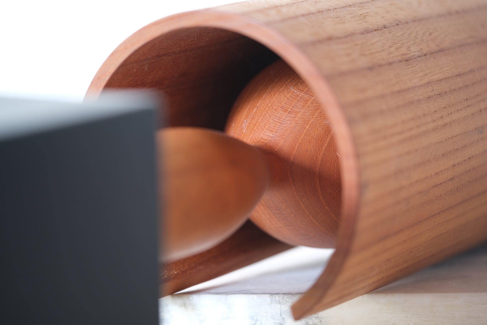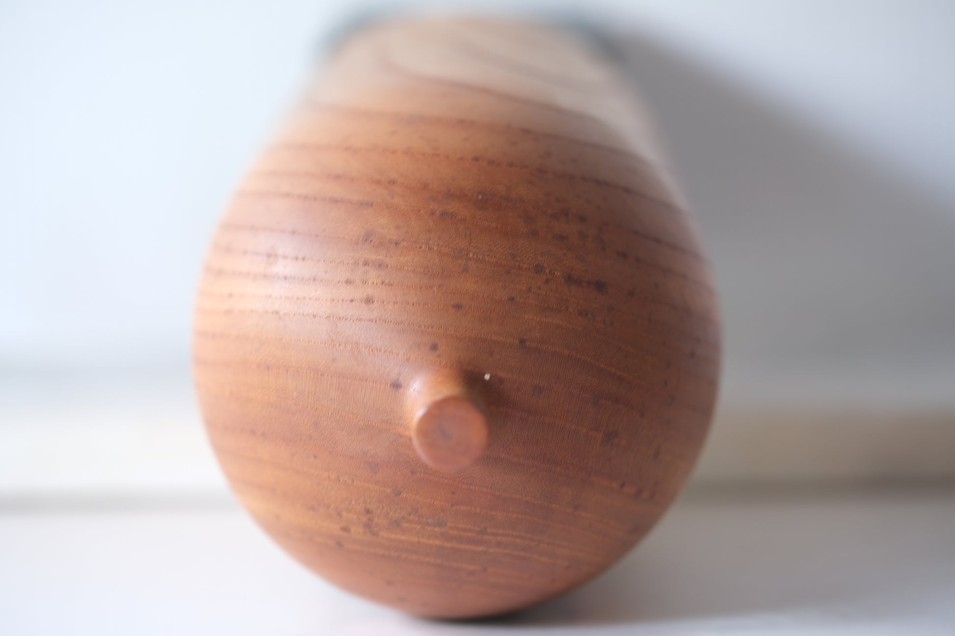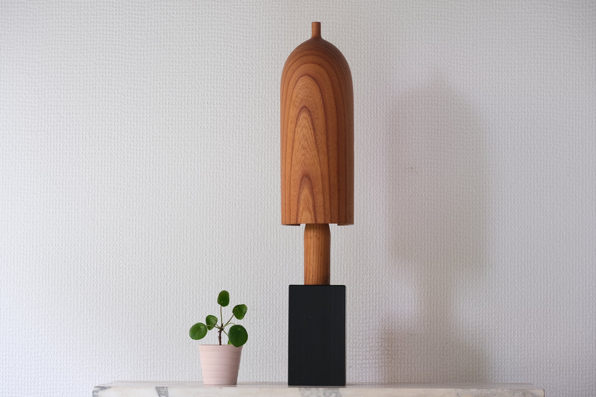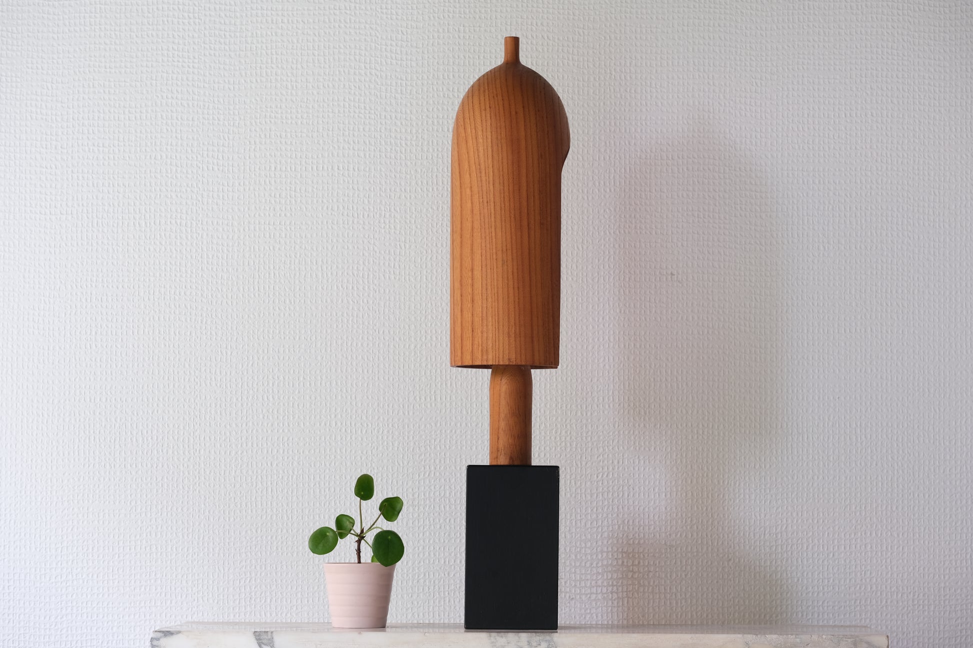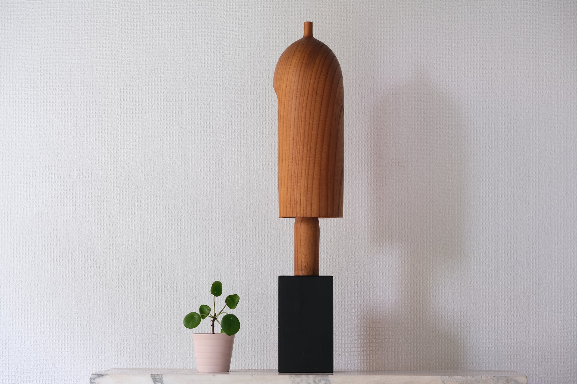 This kokeshi is a very rare piece by Shozan Shido. She is for sure different from his other designs as it is mainly a representation of a face instead of a 'whole' kokeshi. She is made from beautiful wood. Features that resemble his other work are the hairstyle and the mouth (a small hole). This kokeshi is a once in a lifetime opportunity.
