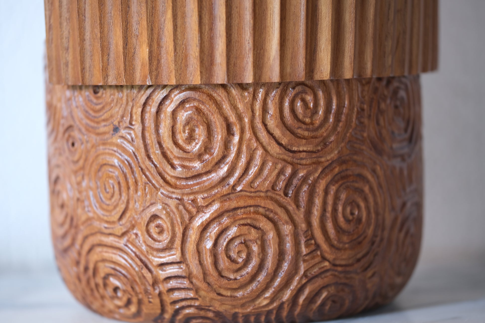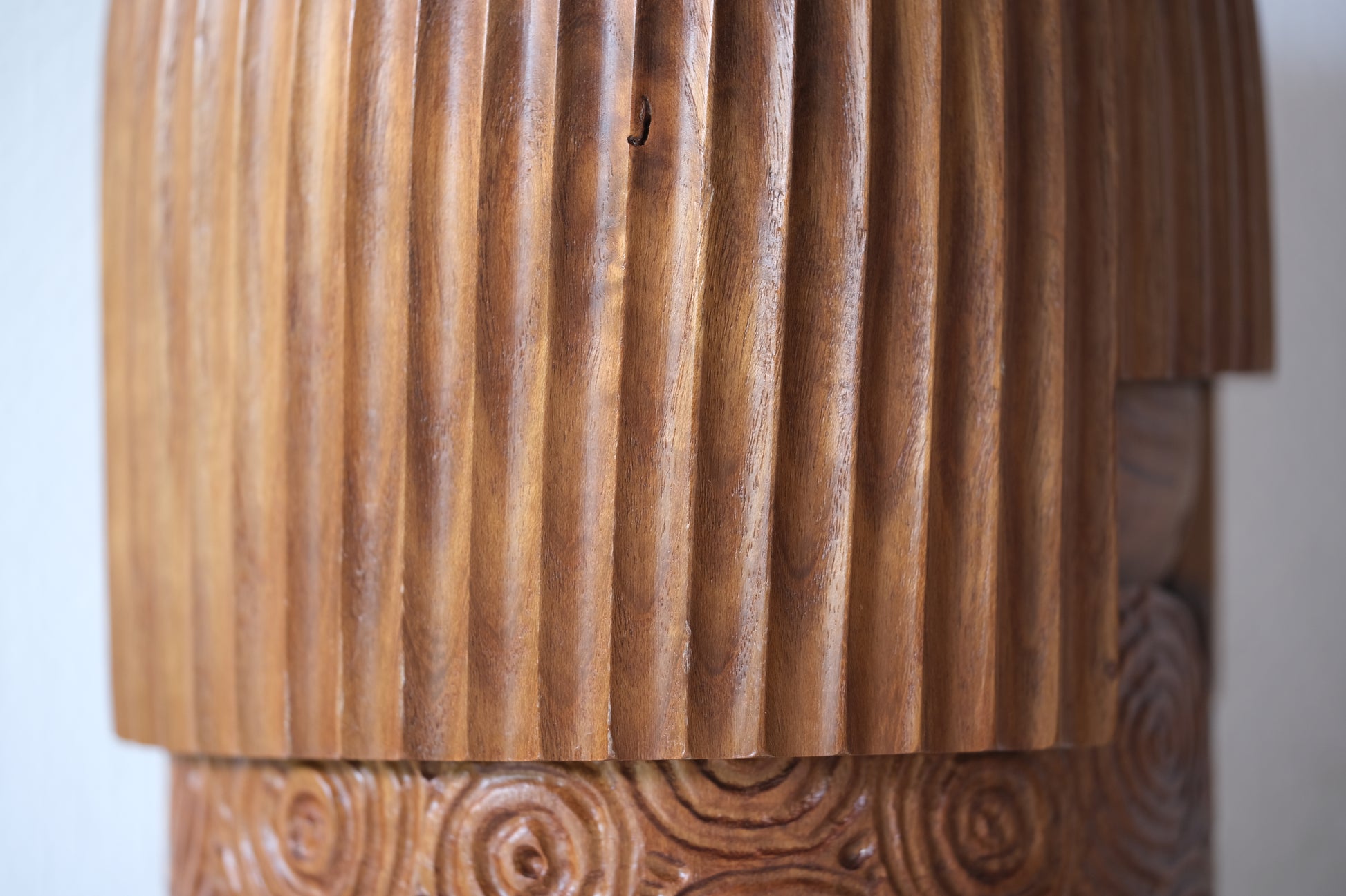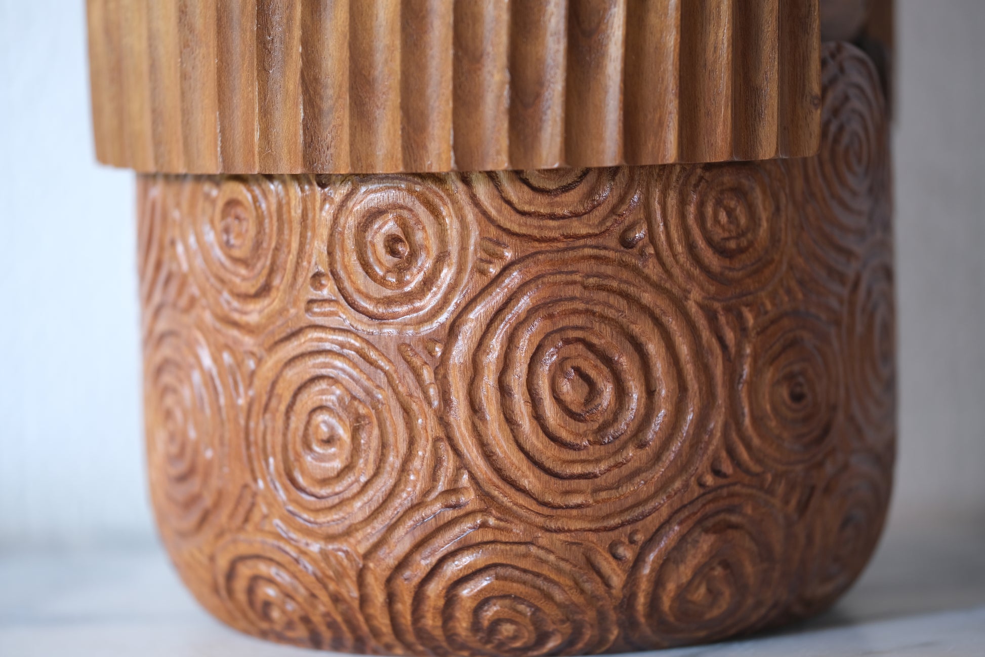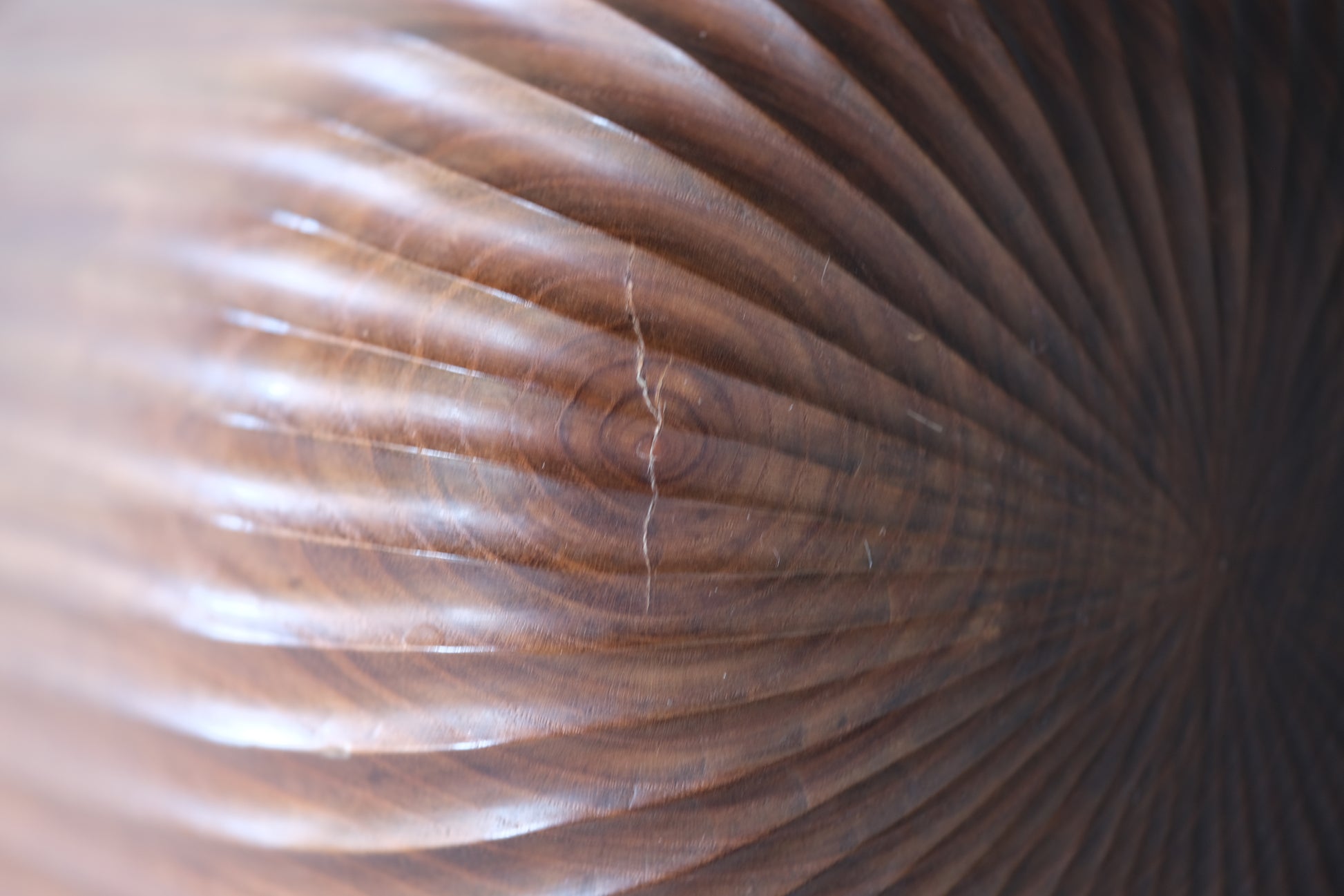 This vintage Kokeshi is rare version of a classic design by Shozan Shido. The round decorations are deeply carved and make the doll look more powerful. What is superb kokeshi. She is made in Showa 59 which corresponds to 1984.