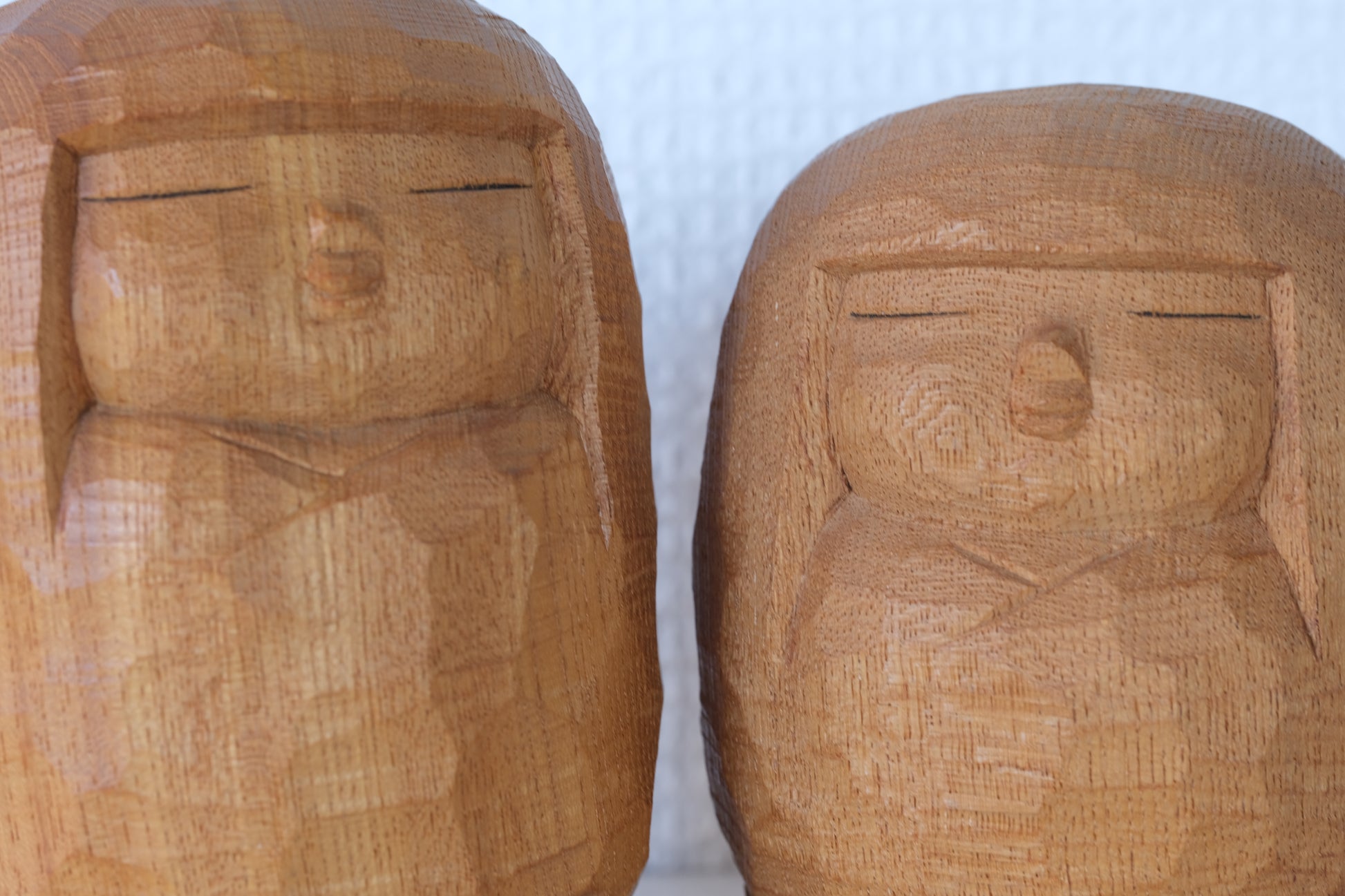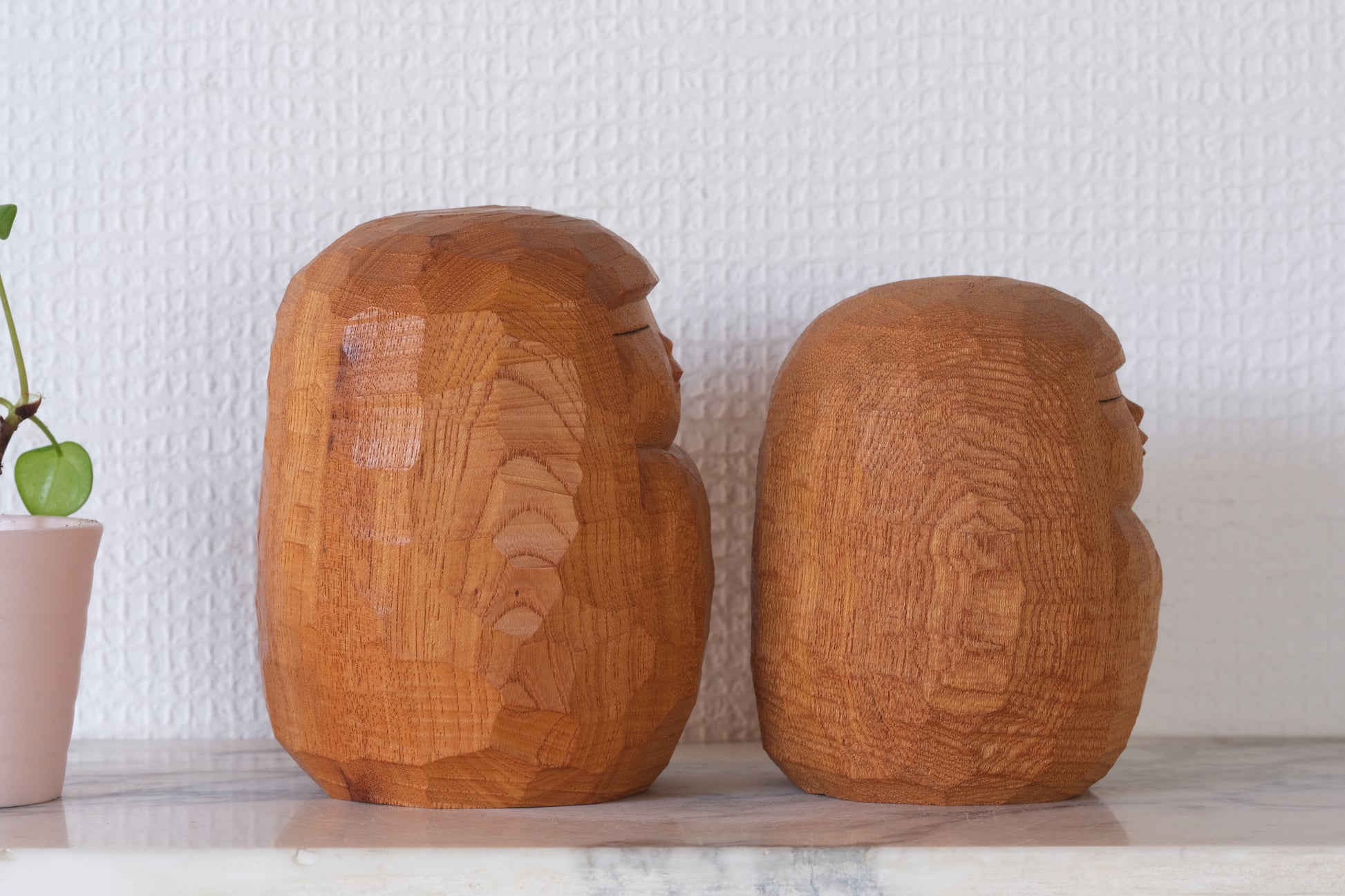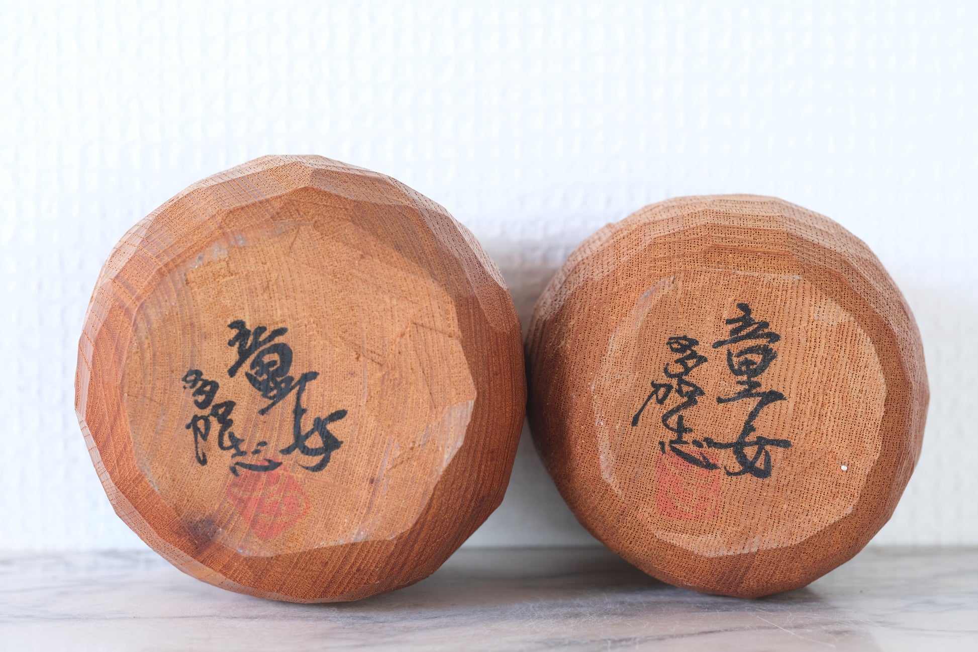 This is a beautiful exclusive pair of  Vintage Kokeshi by Yoshida Takashi. They are beautifully sculptured from a piece of wood. They could be a mother and child.