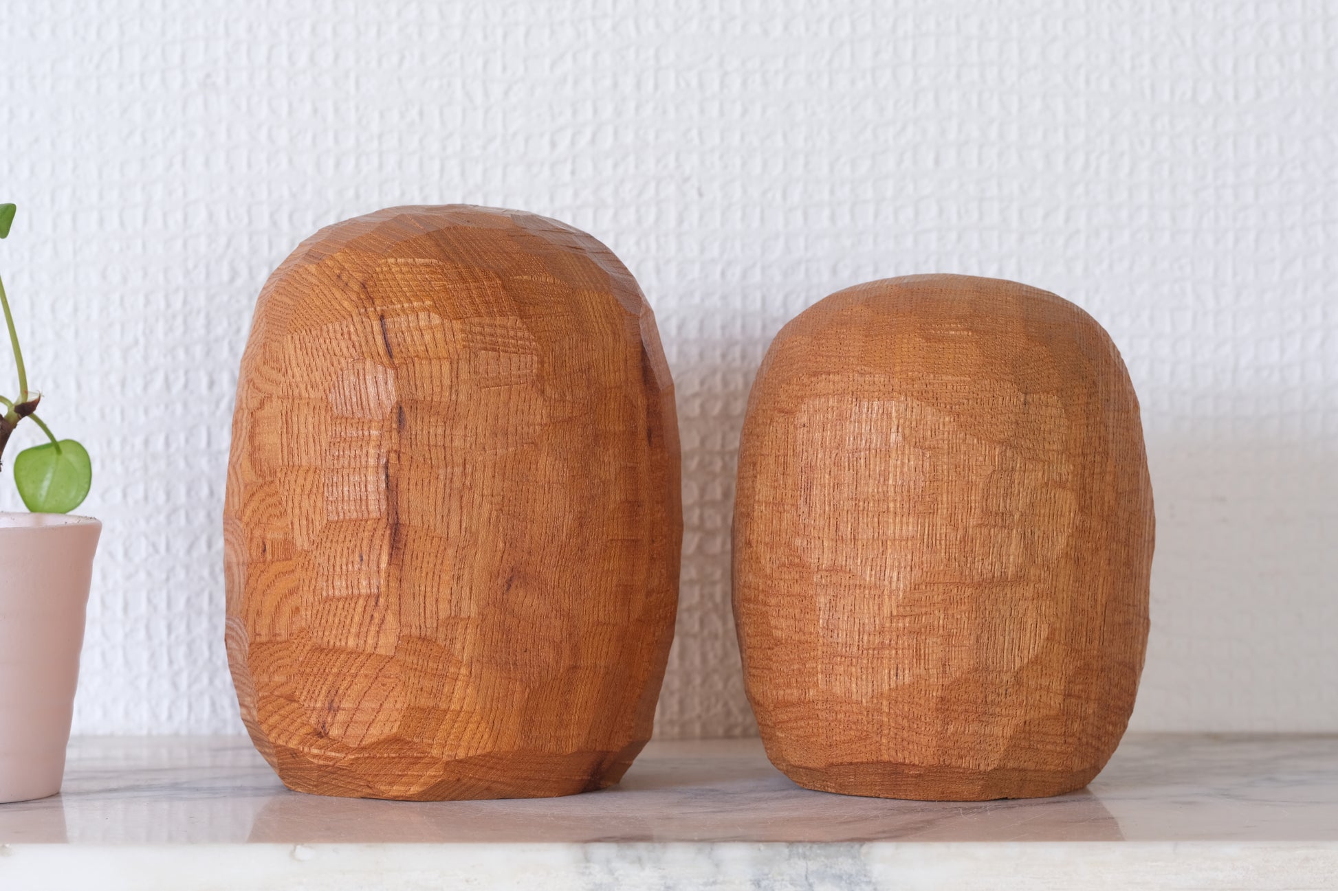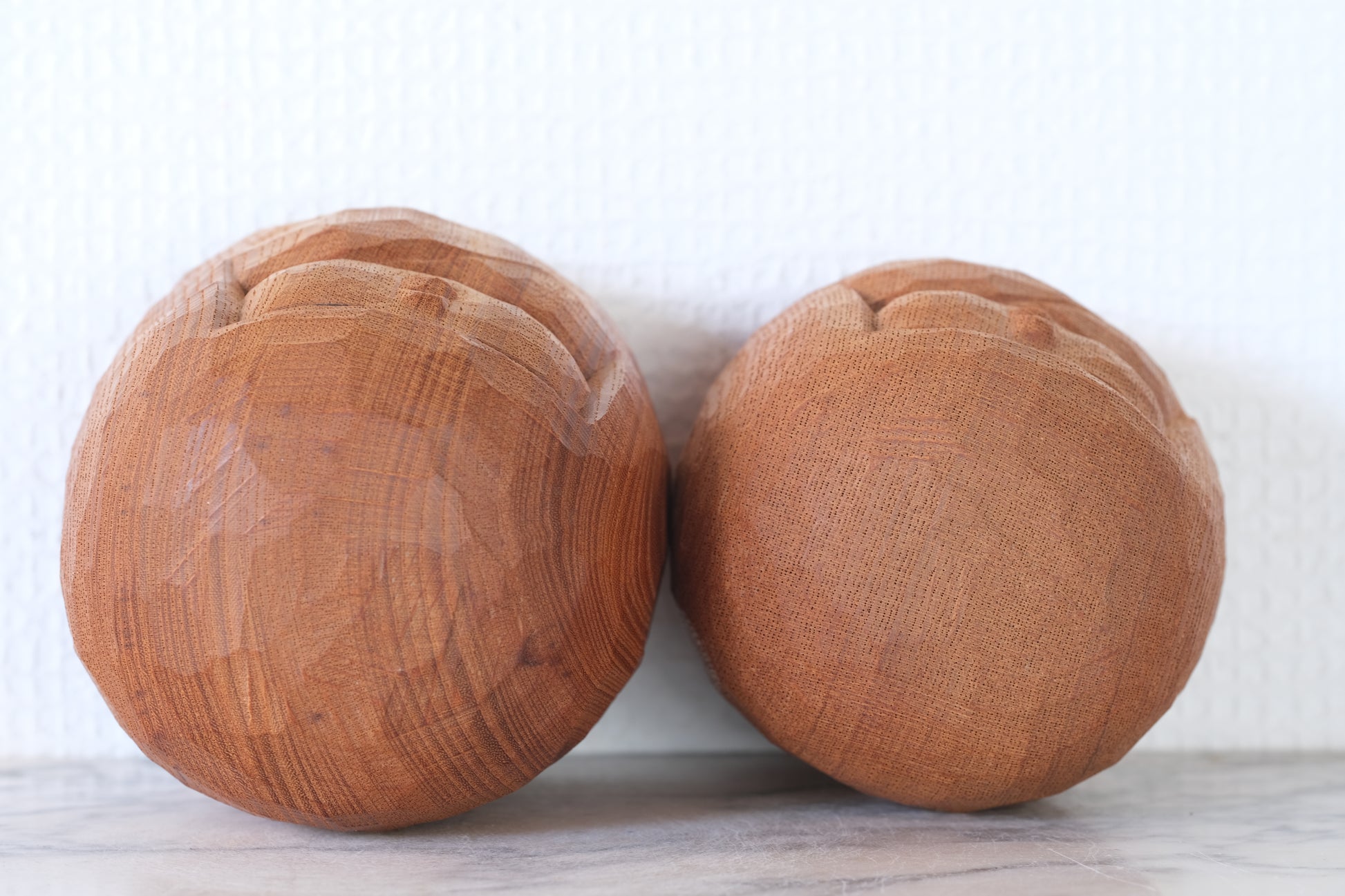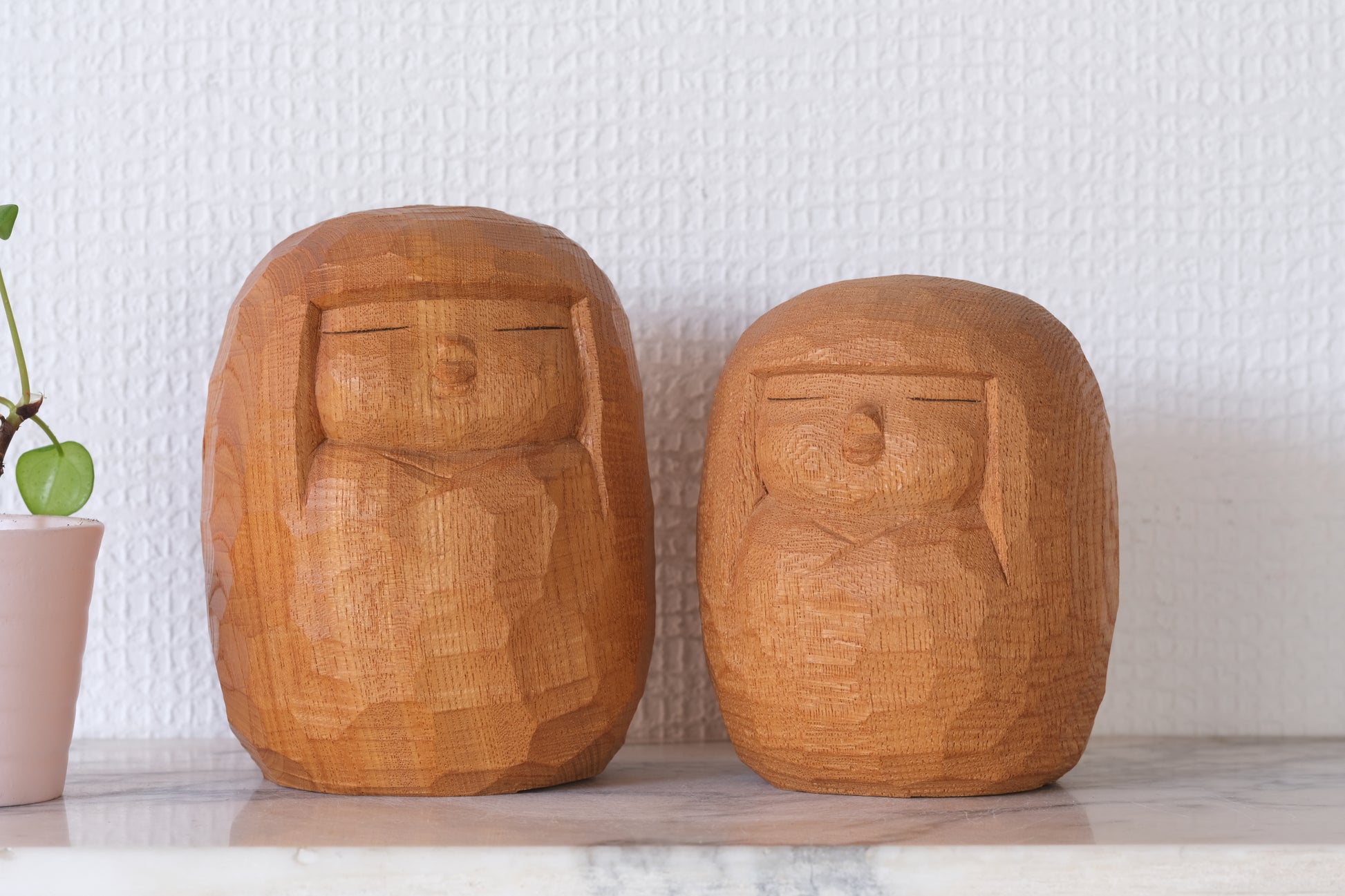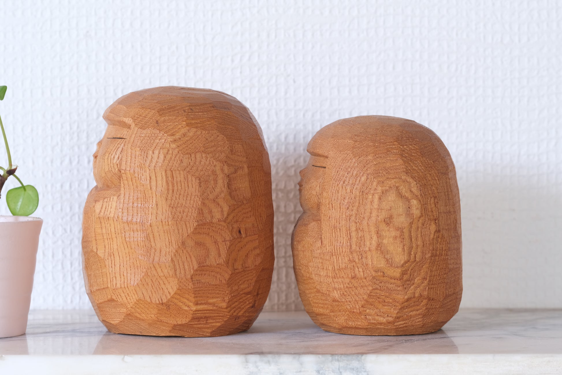 This is a beautiful exclusive pair of  Vintage Kokeshi by Yoshida Takashi. They are beautifully sculptured from a piece of wood. They could be a mother and child.